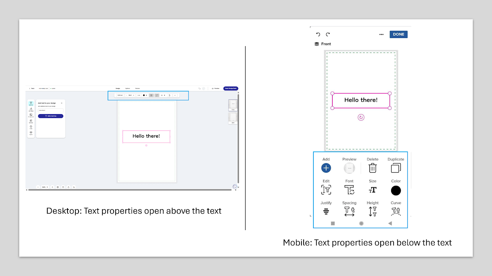 - Edit text content – To modify your text, double-click on the text box or click on the text box once and choose ‘Edit text’ from the menu that appears. This will open the input field where you can make your changes.