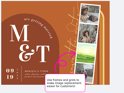 Keep image crops tight. In addition to using frames and grids instead of vector masks, we highly recommend picking a photo that best fits closely over the dimensions of the frame to make it easier for the average consumer photo to fit inside.