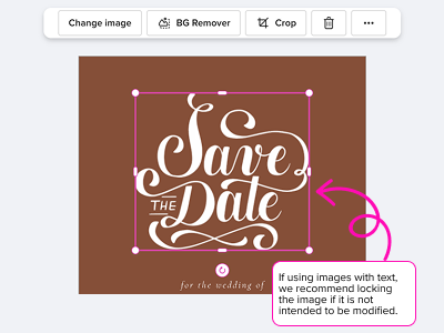 Try to avoid using images containing text. We recommend avoiding images containing text as consumers often want to modify text options on these objects (like changing font color or style) but are unable to do so because the object is image-based. We recommend locking the image if you decide to use images with text and the image is not intended to be modified.