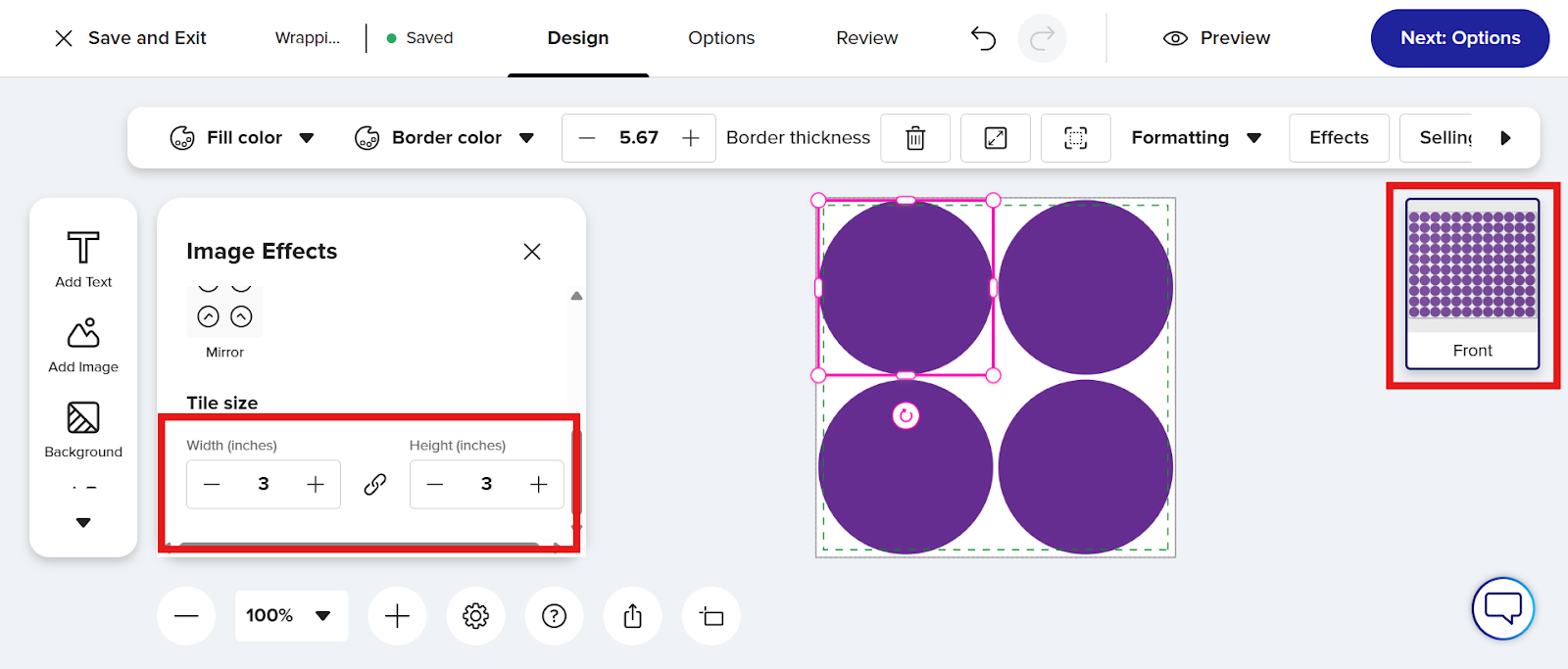 When you change the tile size to 3"x3", you now have 4 circles in the 6”x6" square. The "virtual tile" size is now only half as wide and half as tall as the 6"x6" square. Notice how this looks in the preview now.