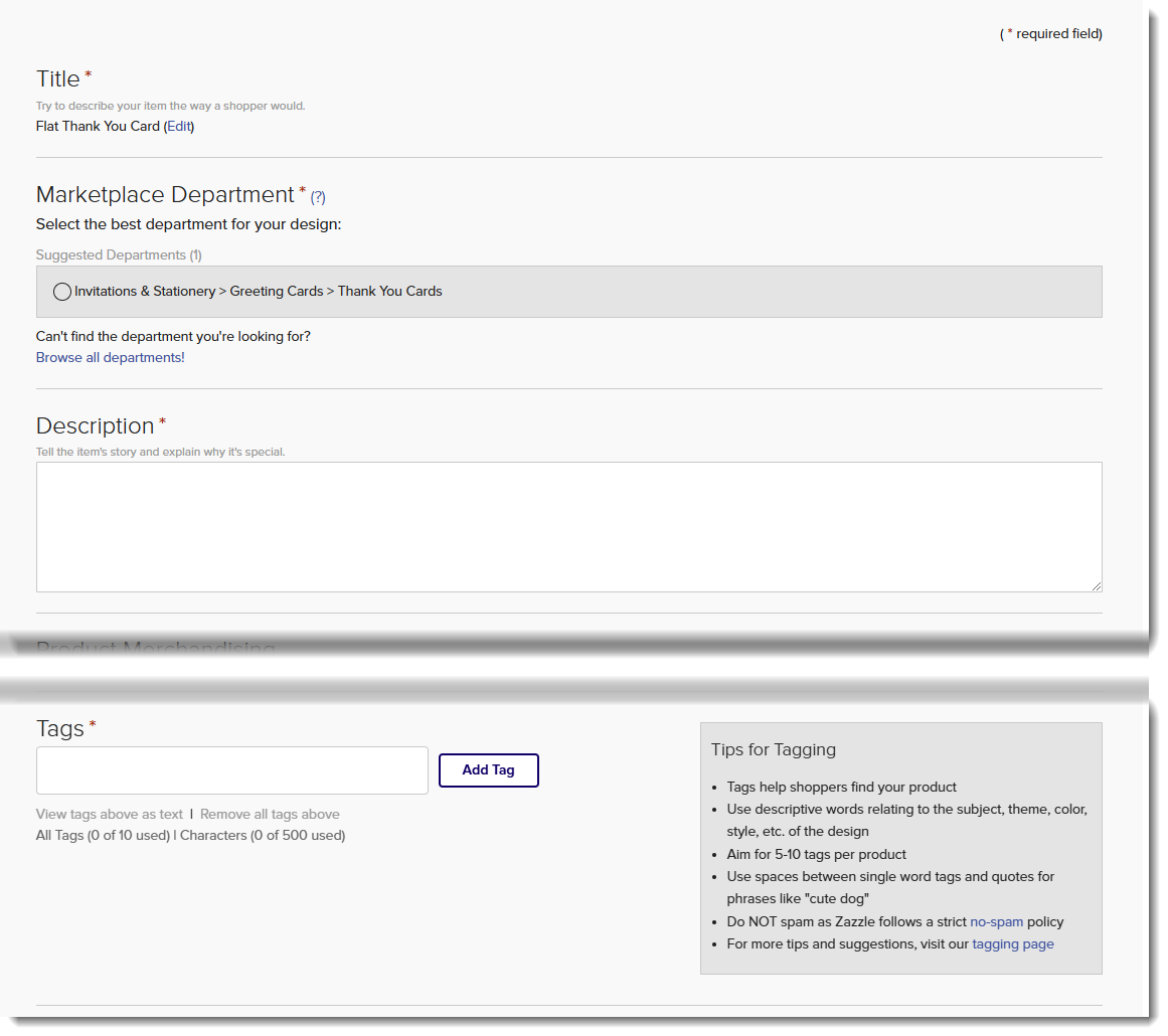 Debe aceptar los términos de Zazzle antes de publicar. Las reglas clave incluyen: