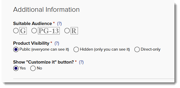 La clasificación de tu producto determina quién puede ver y comprar tu diseño.