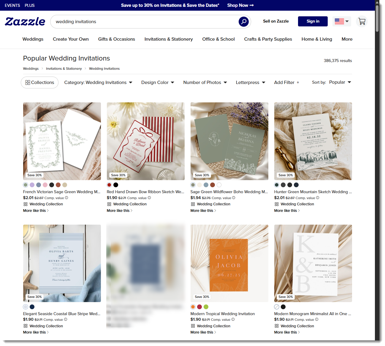 例えば、お客様があなたの「パステル水玉セーブザデートカード」と検索したと仮定すると、検索結果トップに現れるあなたの商品にはそのデザインの全てのカラーバリエーションが同時に表示されます。一つの商品ページ上でお客様はお好きなカラーを選択することができます。この機能により、お気に入りデザインが見つかっても引き続きお求めのカラーを探して検索を続ける必要がなくなりました。